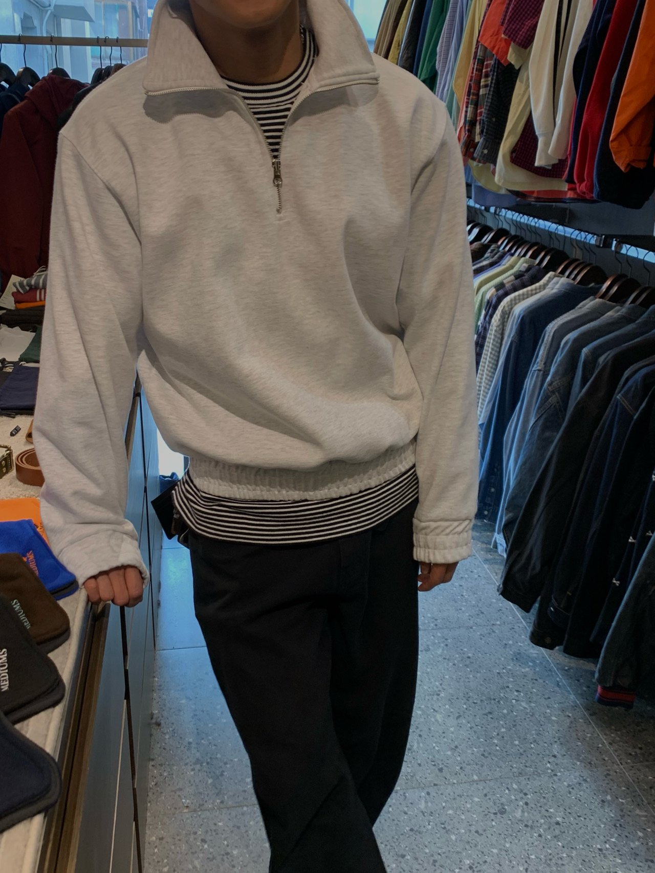 • 반집업 디테일: 깔끔한 하프 집업으로 단독 착용은 물론, 다양한 이너와 레이어드 코디가 가능합니다.