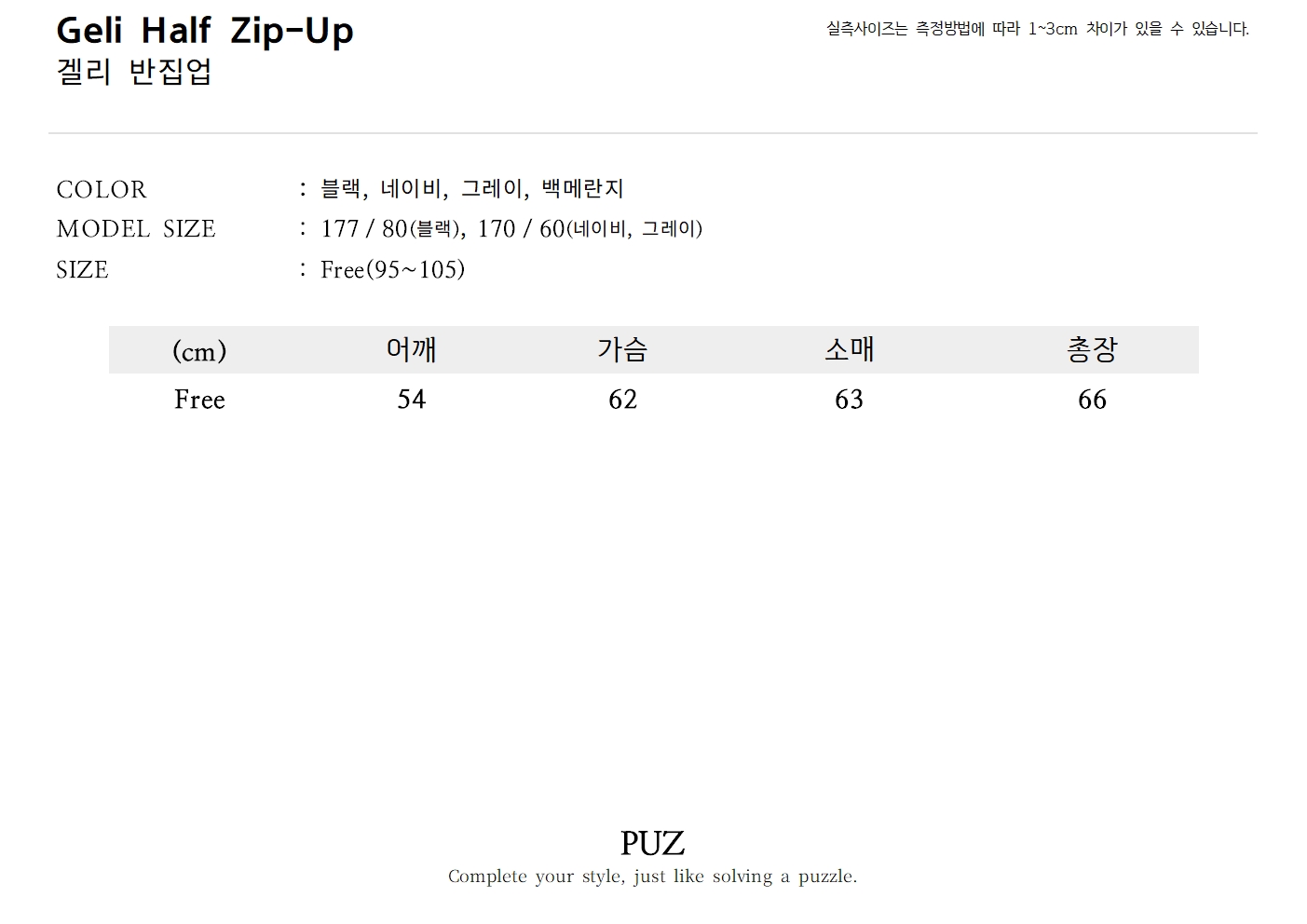 • 반집업 디테일 : 깔끔한 하프 집업으로 단독 착용은 물론, 다양한 이너와 레이어드 코디가 가능합니다.