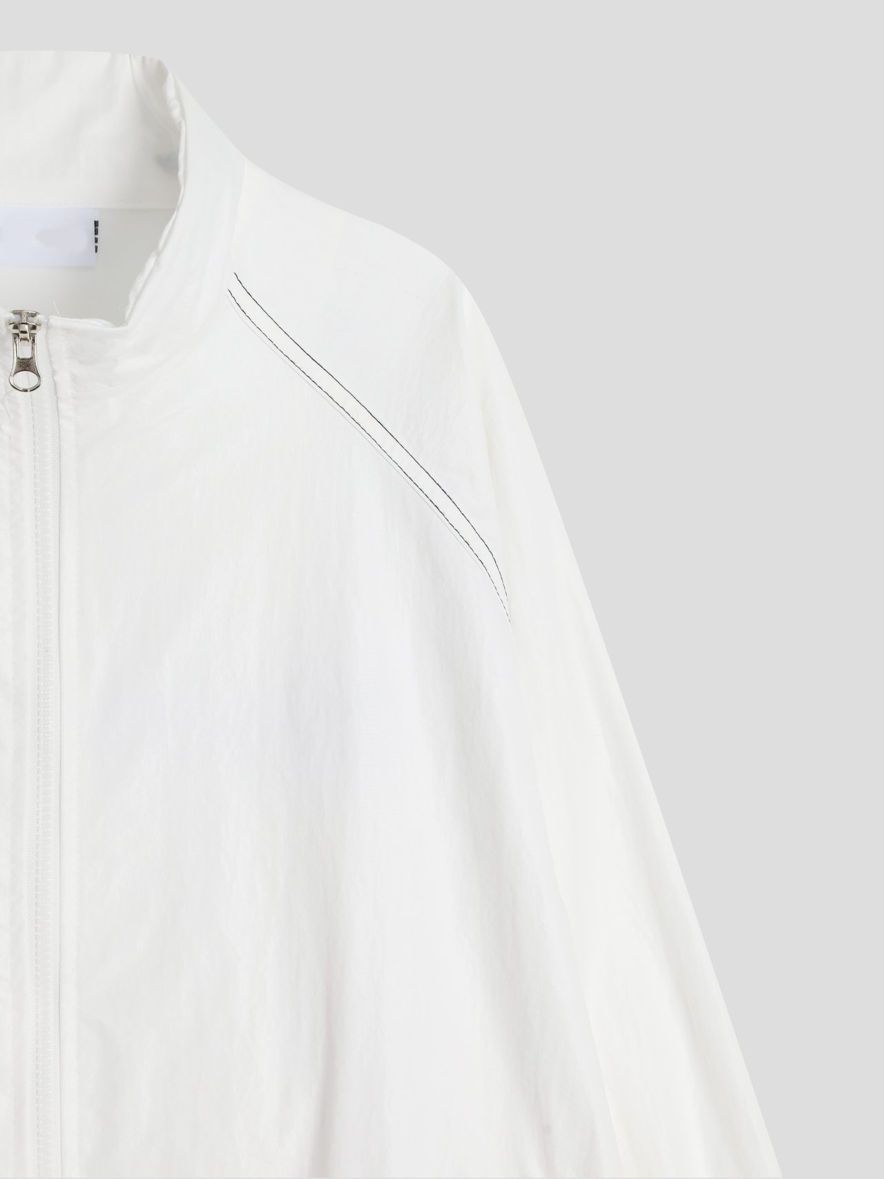 • “코팅된 텍스처와 심플한 로고로 세련된 무드를 연출하는 나일론 자켓”