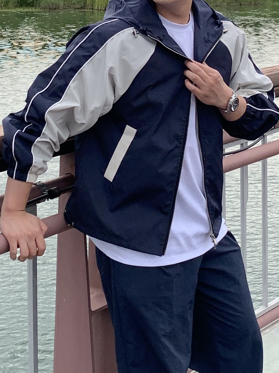 • “투톤 컬러 조합과 생활방수 기능으로 완성되는 감각적인 트레이닝 자켓”