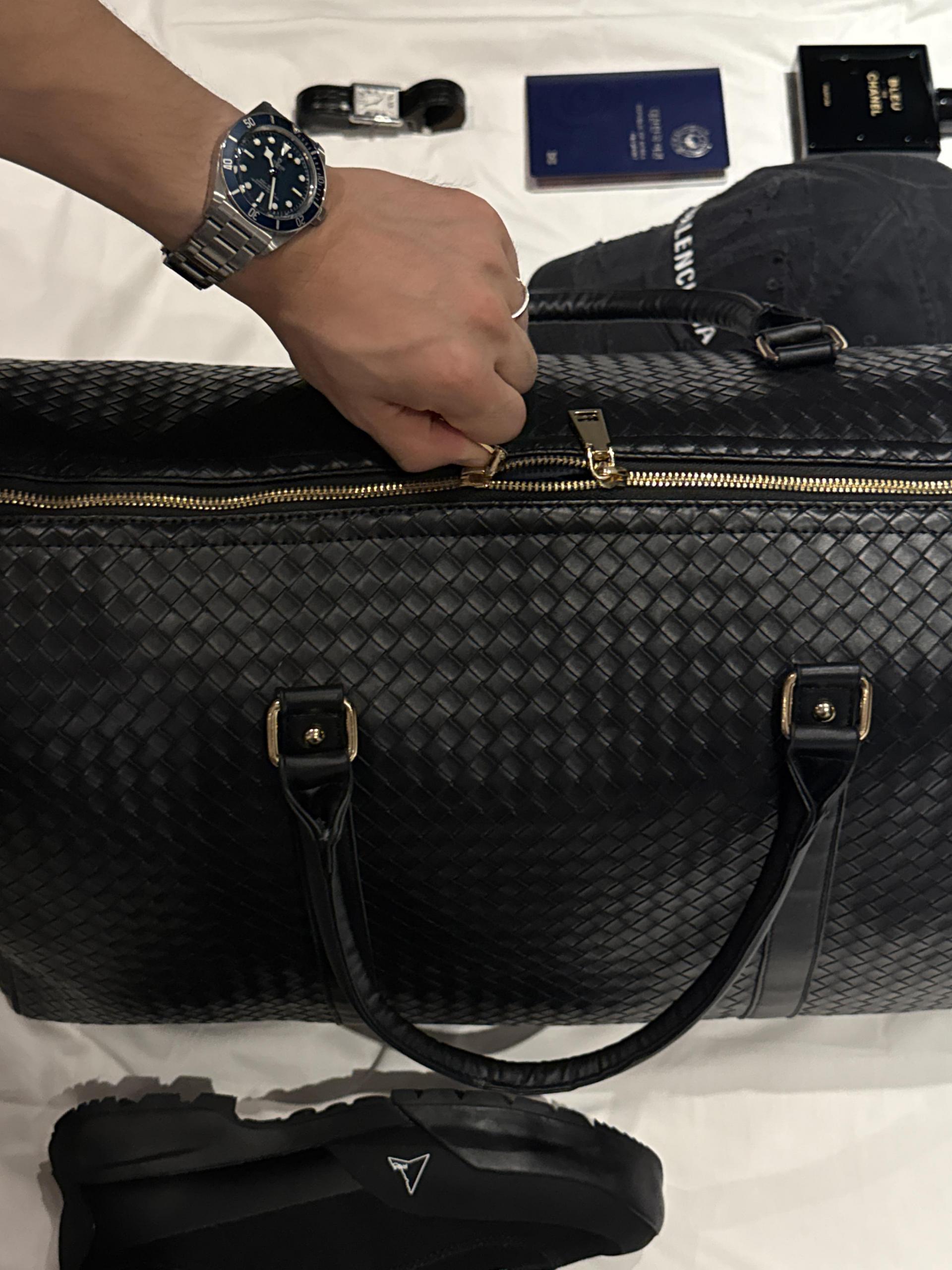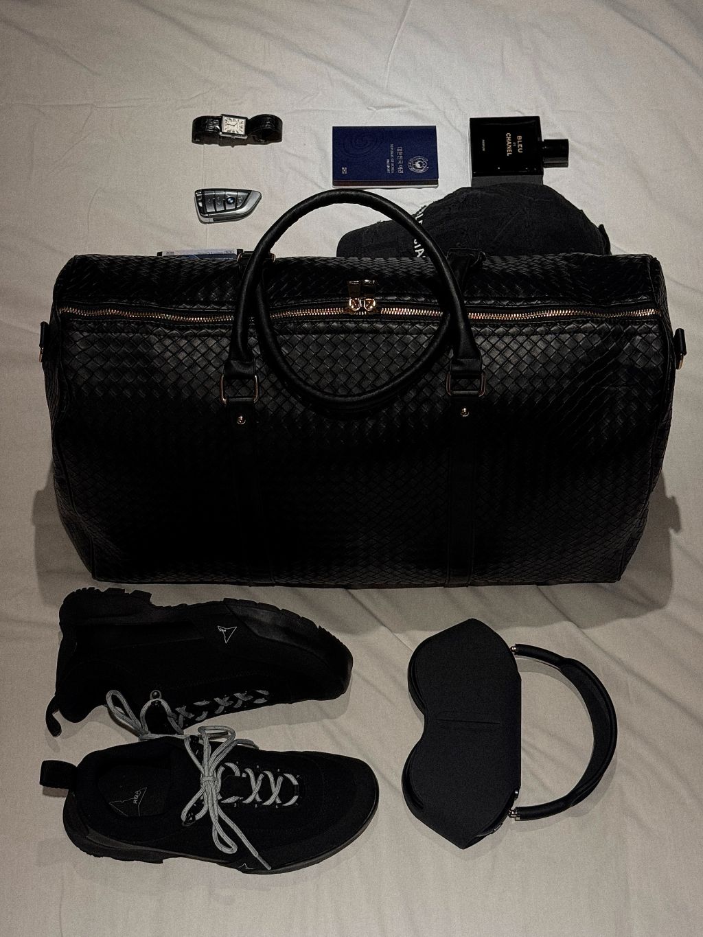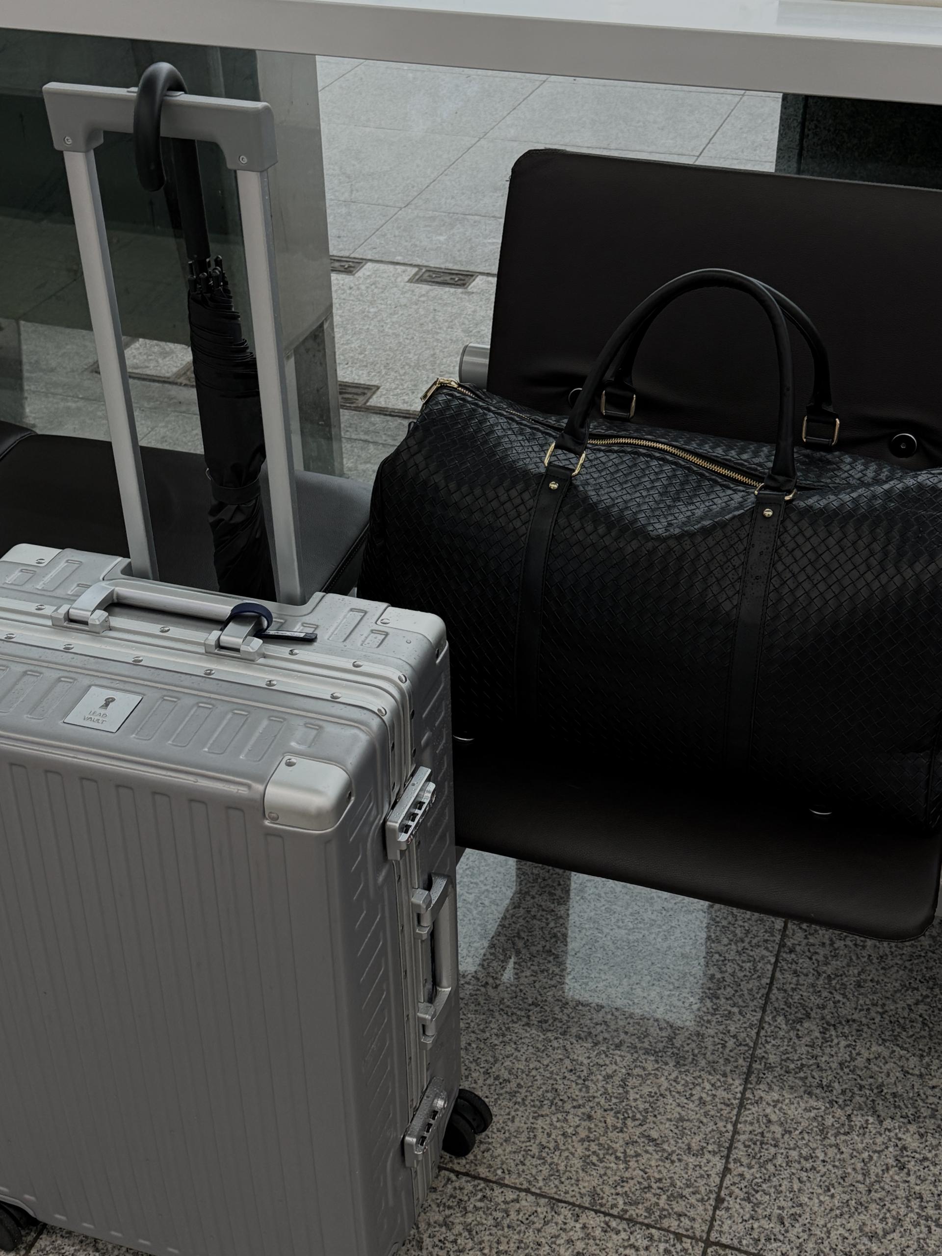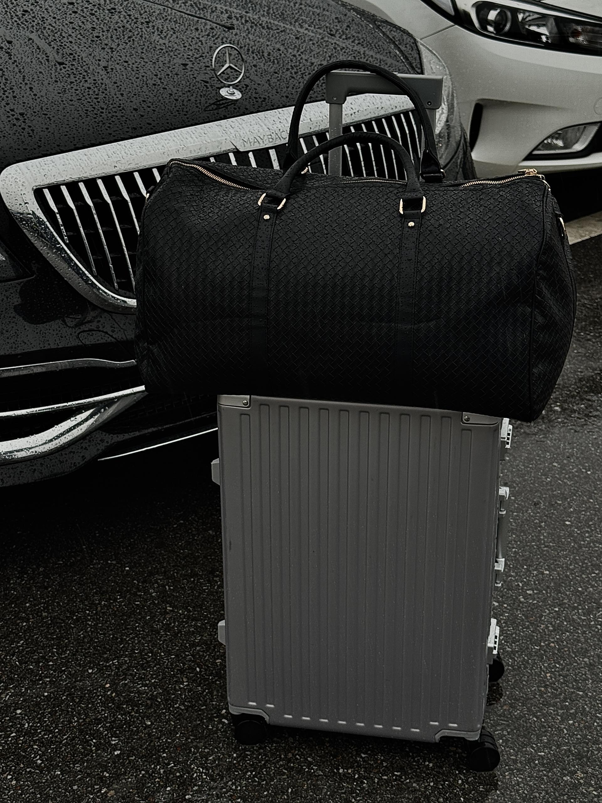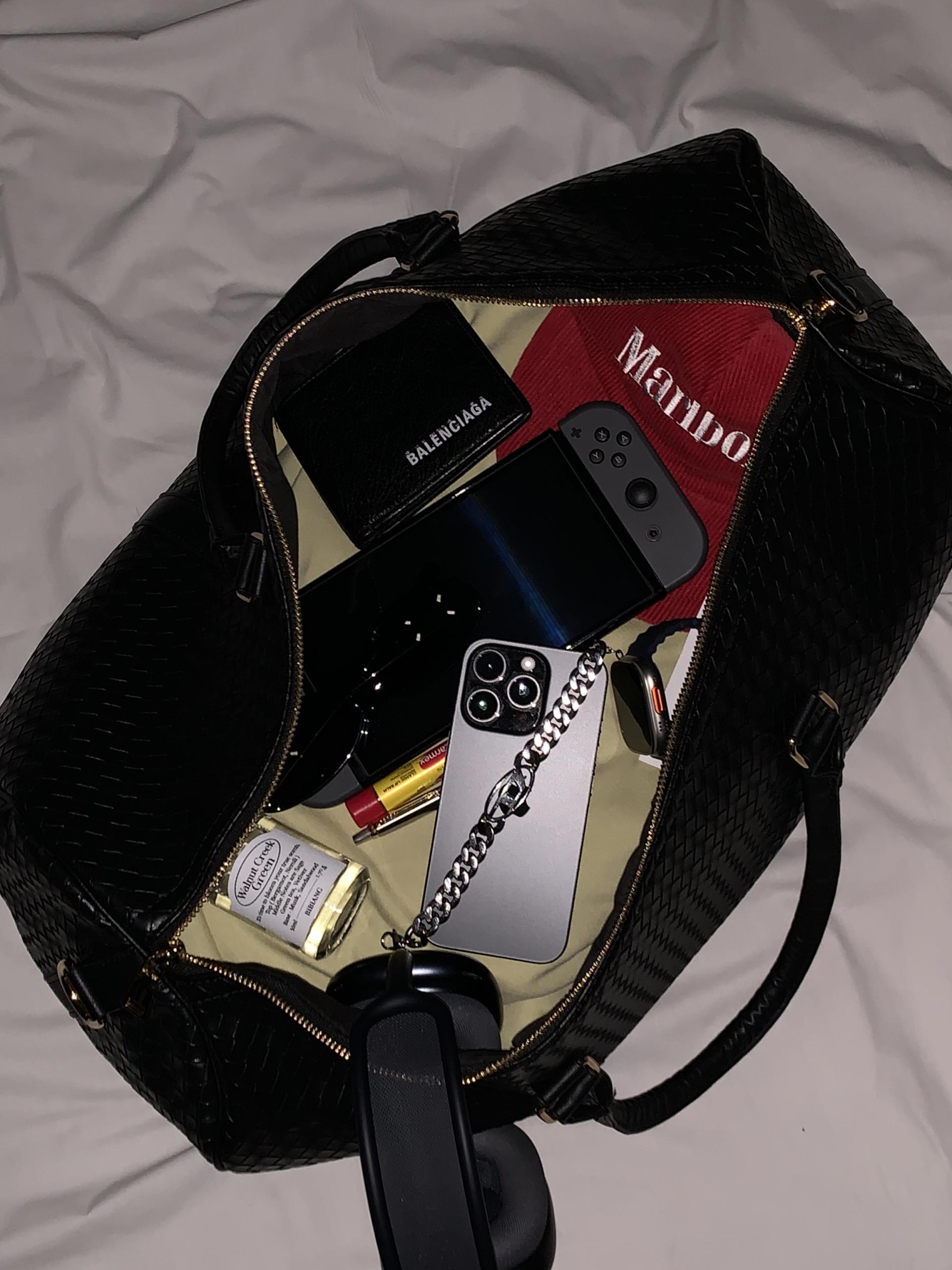 • “은은한 광택의 위빙 텍스처로 세련된 무드를 완성하고, 넉넉한 수납공간으로 다양한 상황에 활용할 수 있는 올블랙 보스턴 백”