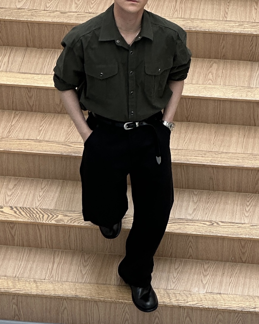 • "고급스러운 카키와 블랙 컬러로 완성된 멋스러운 데일리 룩"