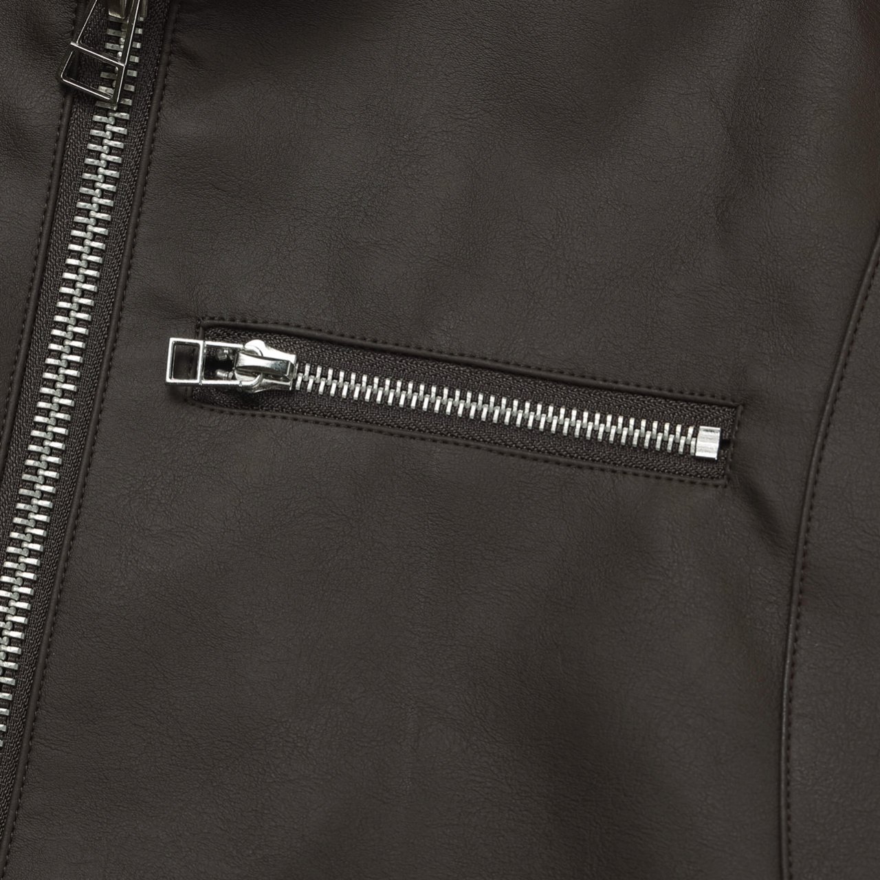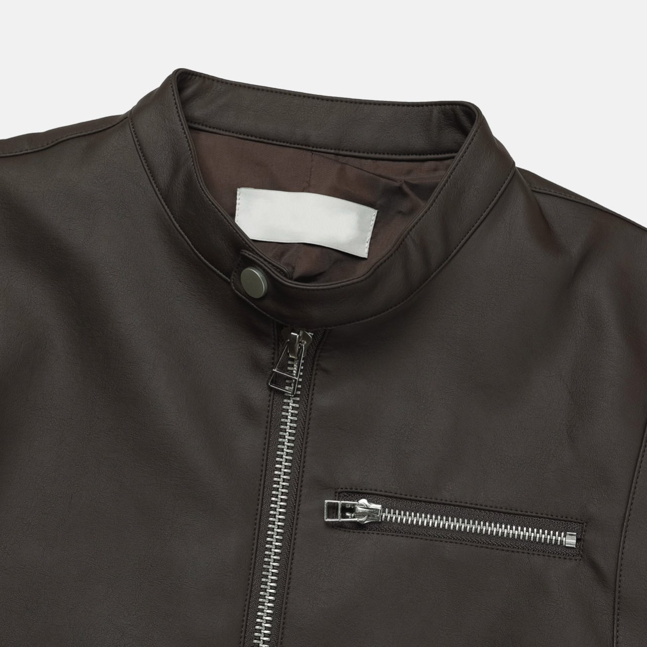 • PU100 혼용 원단으로 제작되어 가볍고 관리가 용이하며, 라이더 자켓 특유의 깔끔한 실루엣을 살렸습니다.