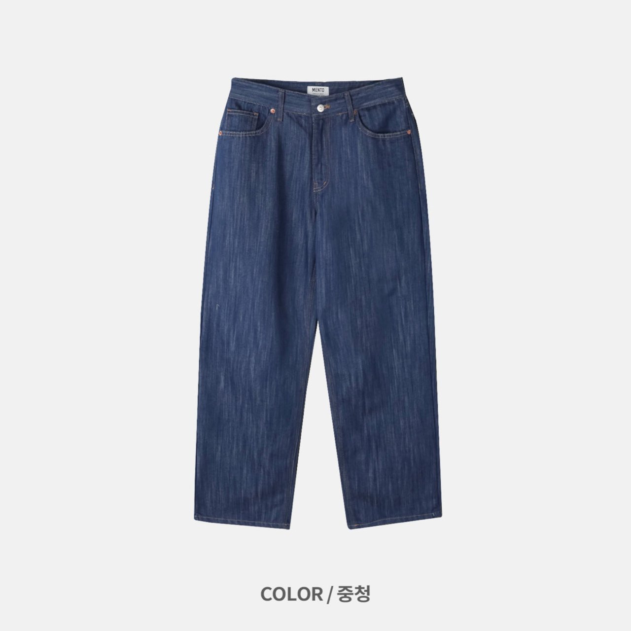 • 진청 : 깊이감 있는 톤으로, 고급스럽고 세련된 무드를 연출하며 다양한 상의와 매치하기 좋습니다.