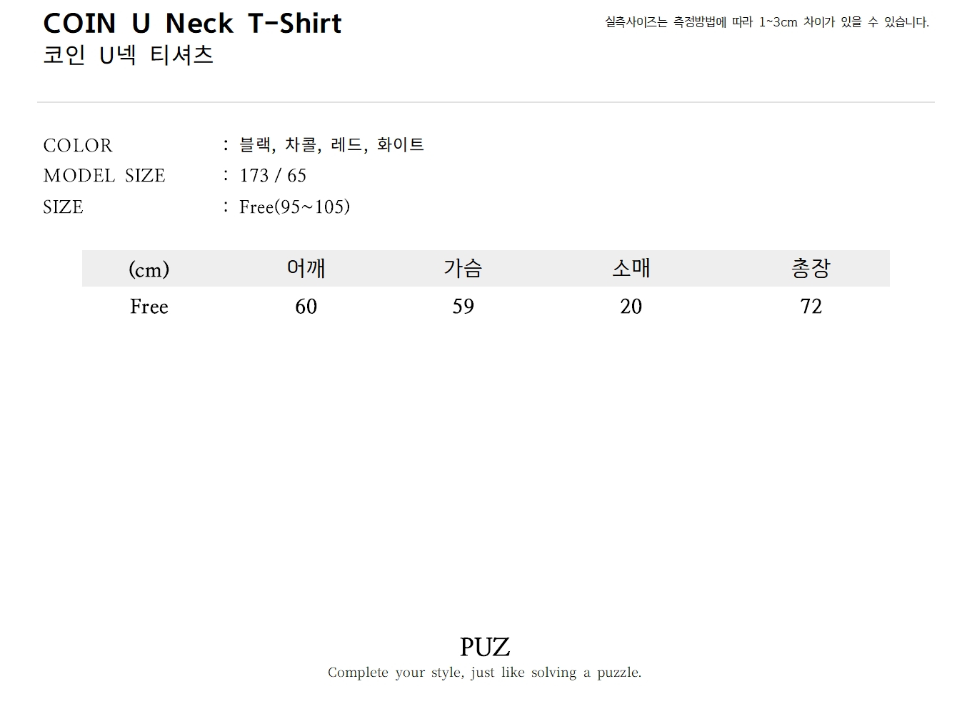 • Free : 루즈핏 디자인으로 체형에 구애받지 않고 누구나 편안하게 착용 가능합니다.